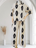 Calças com elástico ajustável na cintura, e bolsos,e camisa em com botões forrados com o mesmo tecido.