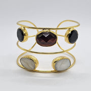 Pulseira Ajustável com banho de ouro,  ágatas castanha, onix preto e madrepérola.